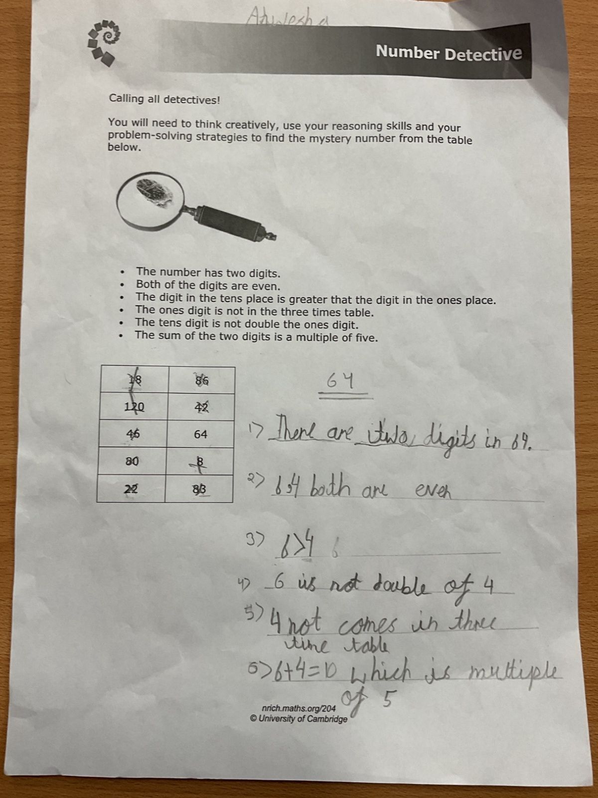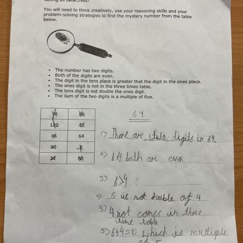 Every fortnight we give the year 2 children a task to solve a maths problem. They are challenged to do this without support and to provide a clear explanation of their work. This week, Anwesha did a fantastic job of identifying the mystery number. Well done, Anwesha! Alonso also gave up a play time to work on the problem and demonstrated fantastic resilience. Well done, Alonso!