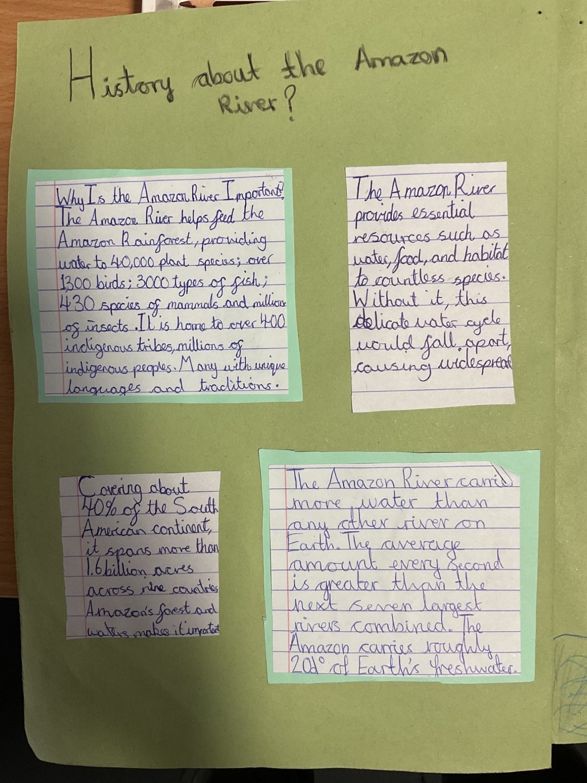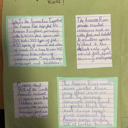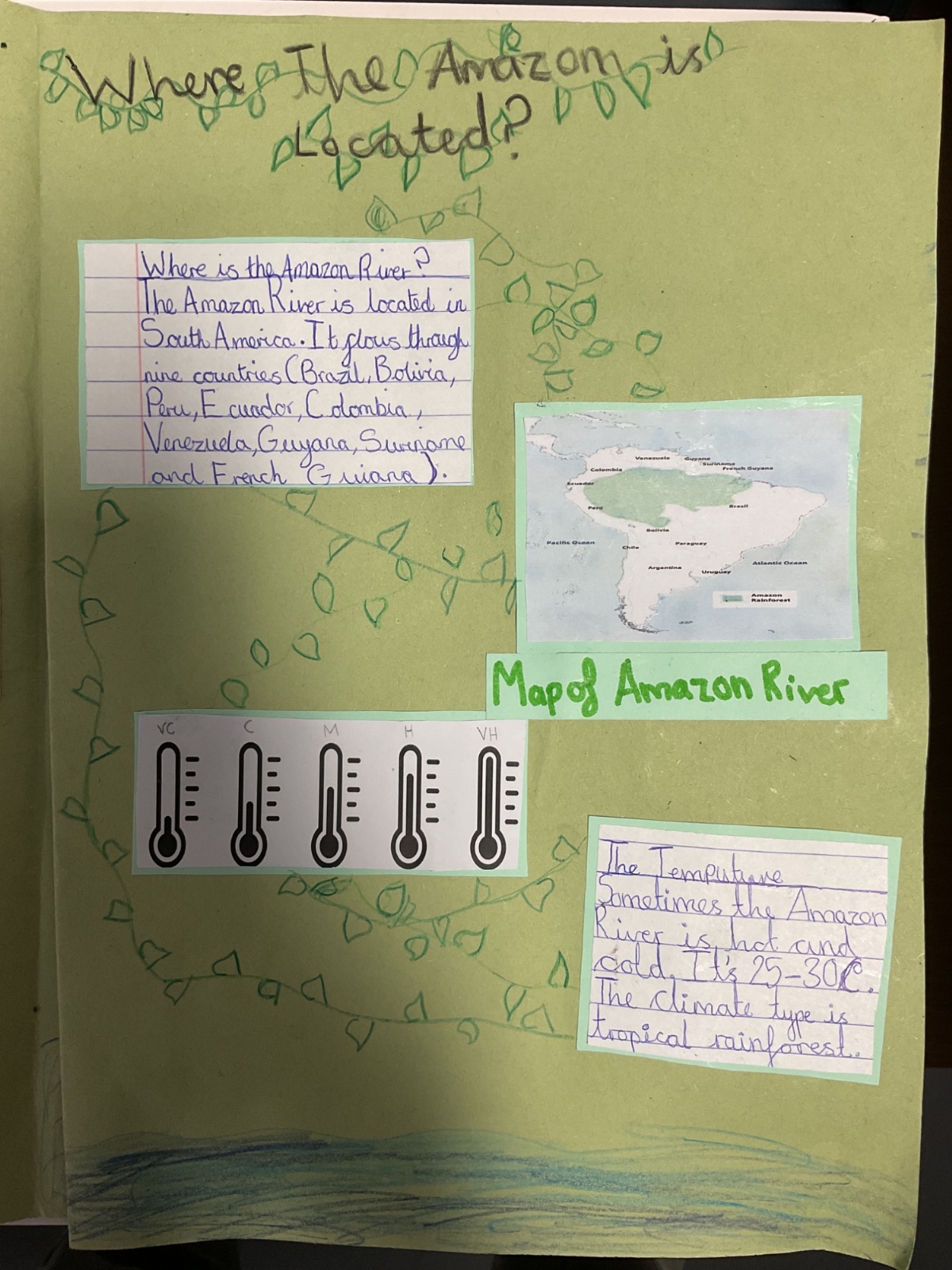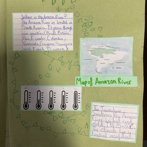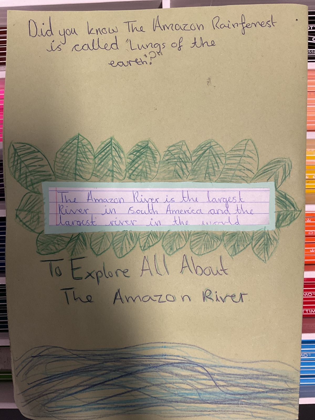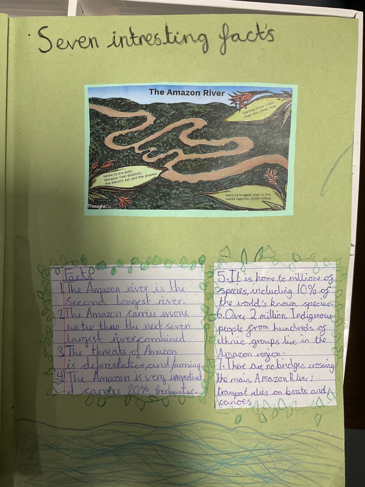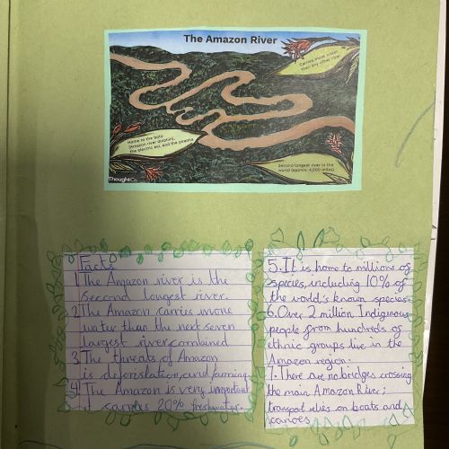 Our year 5 children worked in groups to create beautiful booklets on one of the major rivers around the world (Nile, Amazon, Yangtze and Mississippi).