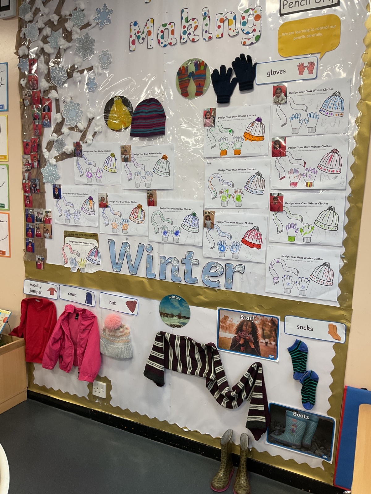 Winter is a special time of the year, when the weather gets colder and the world around us starts to change. We learn to put on our coats, hats and gloves before going outside. Children notice changes in the environment, the trees look bare without their leaves. Children enjoy talking about how the weather feels, cold, windy or sometimes snowy. We have fun carrying out winter activities.