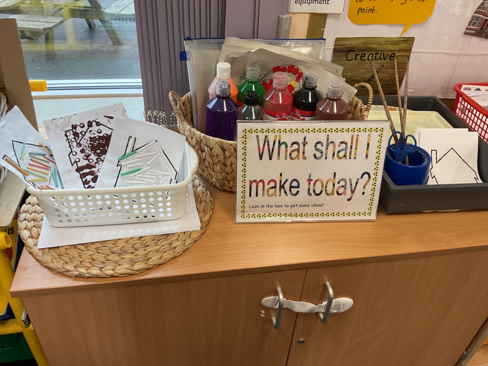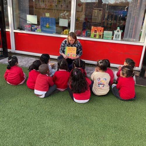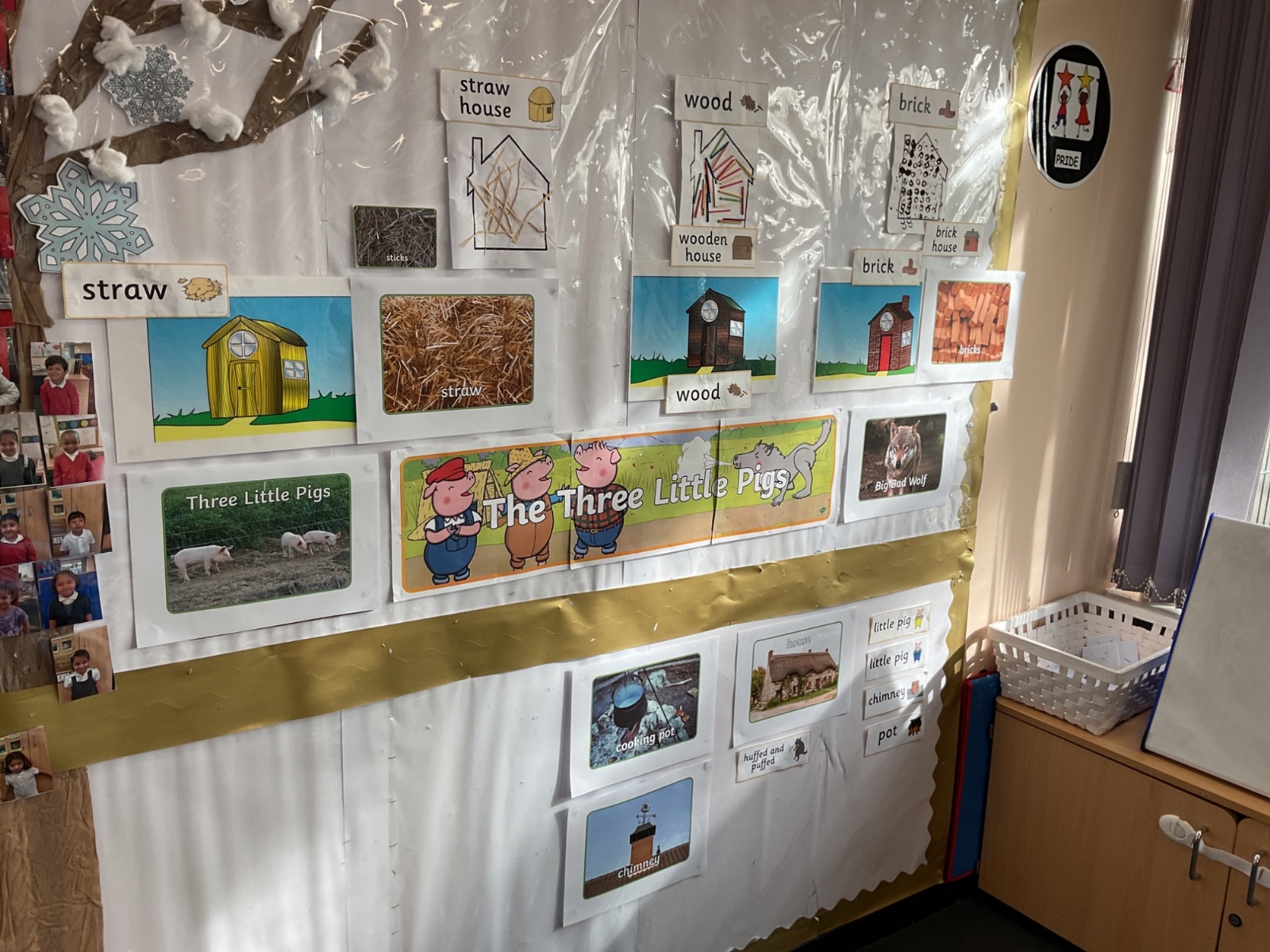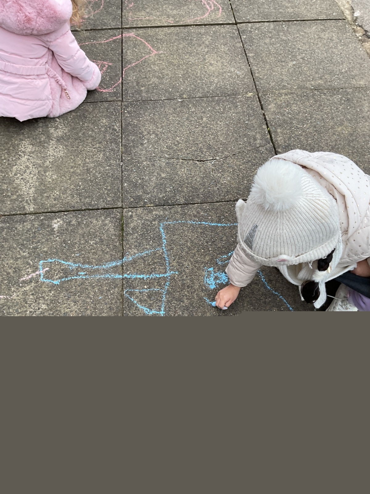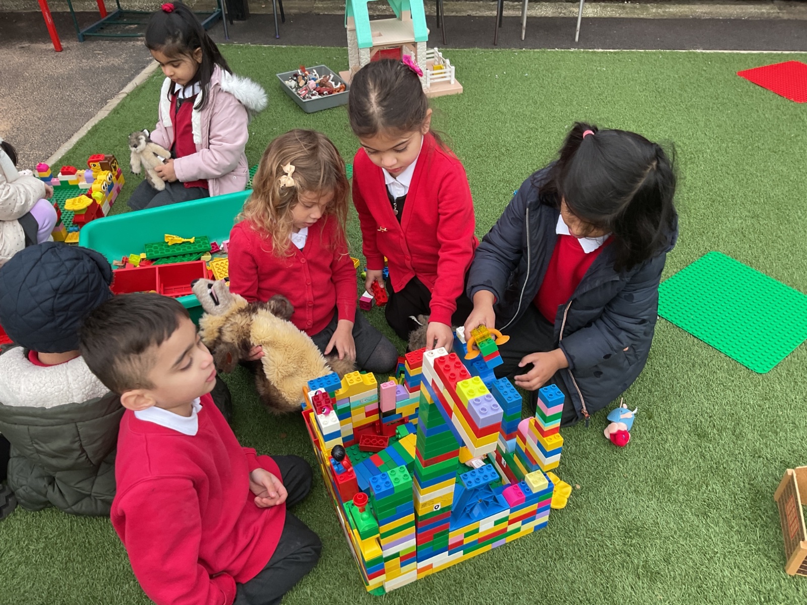 Children had fun retelling the story, 'The Three Little Pigs'. They enjoyed drawing houses in the playground using chalk. They worked together to build strong houses for the little pigs. They used Lego to build the walls and chimney.